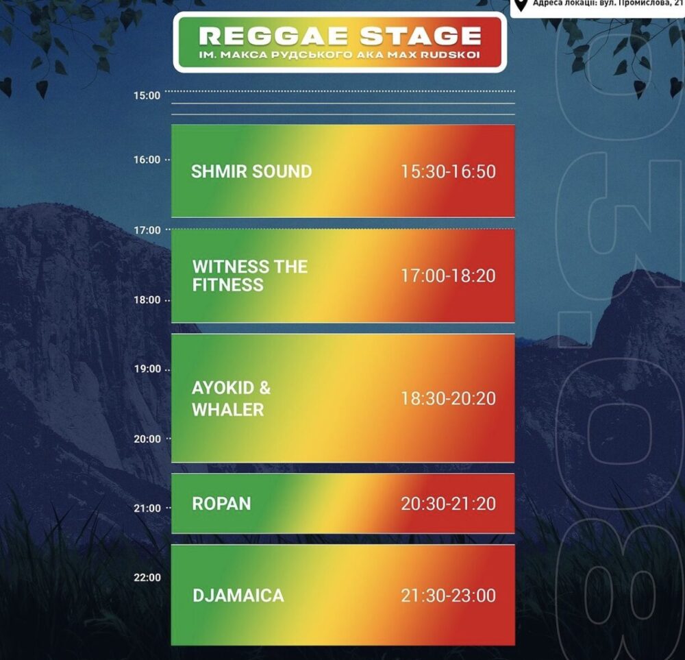 Також на вулиці Промислова, 21, функціонує Reggae Stage – музика, що виникла на Ямайці: