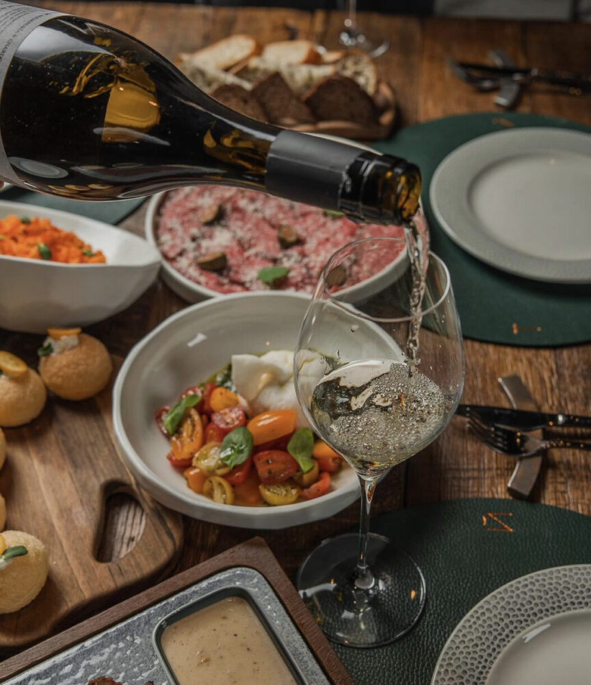 Меню поєднує в собі кілька гастрономічних концепцій азійської та середземноморської кухні. Другий поверх об’єднав концепцію ресторанного сервісу та кальянів. Кожної суботи на цьому поверсі відбуваються вечори афро музики та диско хаусу. Також є два контактних бари. В закладі подають безліч різних позицій: закуски, роли, паста, стейки, салати, десерти та інше.