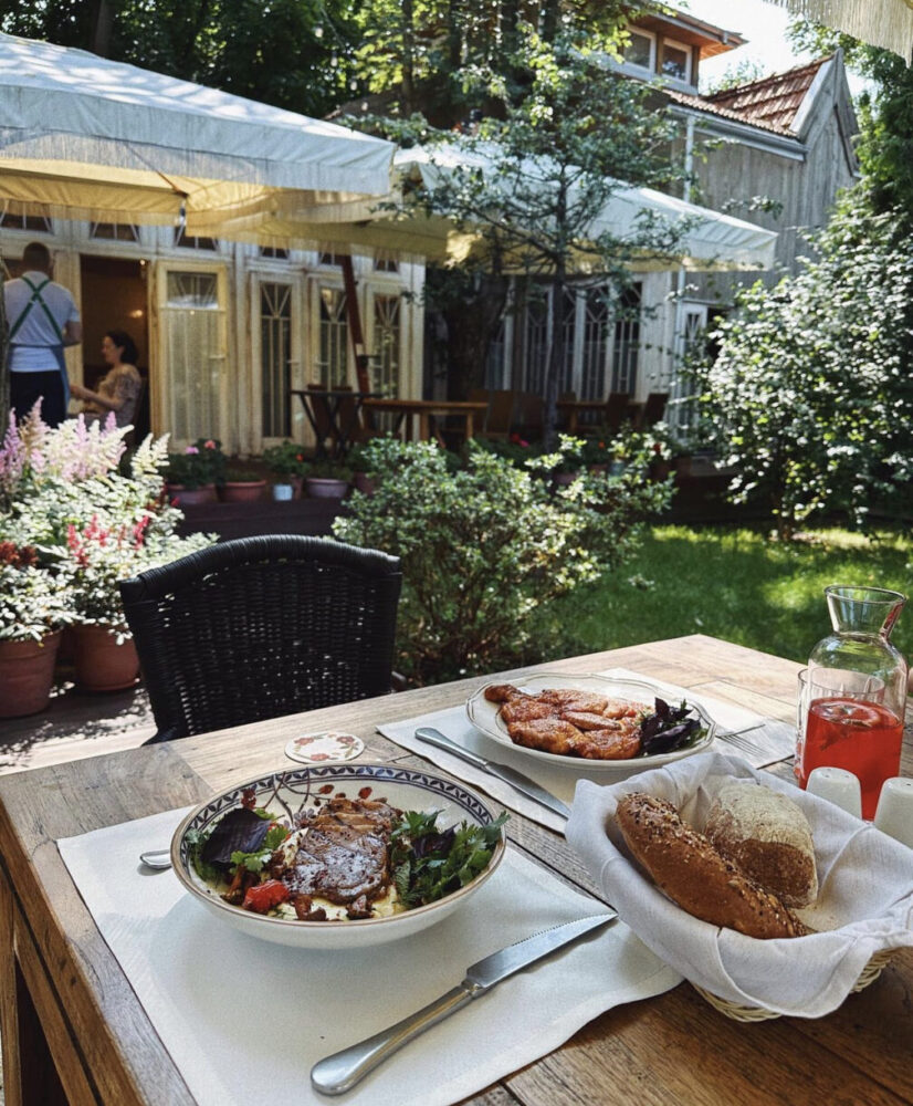 Рекомендуємо відвідати цей ресторан влітку хоч раз через неймовірний сад. Місця на терасі та у саду варто бронювати наперед. Вірменська, єврейська та українська кухні у вишуканому ресторані. У меню – страви з грилю, дещо змінені традиційні страви 3 кухонь, авторські коктейлі, салати, та закуски. На вихідних діє меню сніданків.