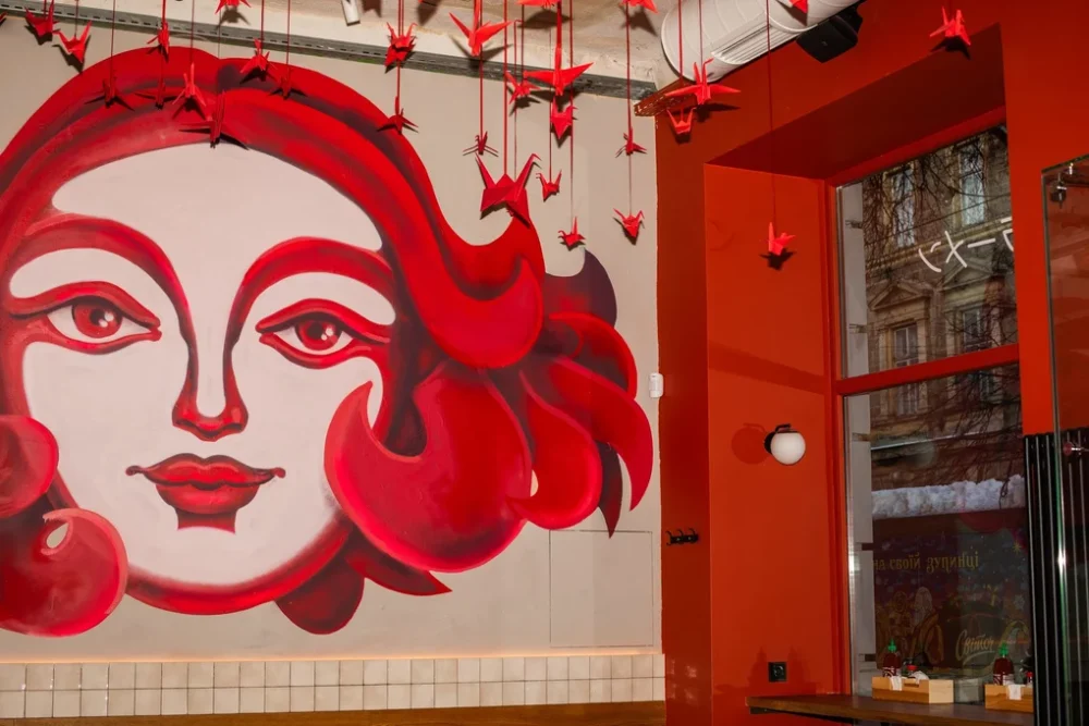 Інтер’єр команда розробляла власноруч. Візитівкою простору стала ілюстрація дівчини Мо на стіні — як і в першому закладі. Також у «Рамен Мо» самі виготовили оригамі-журавлів, якими прикрасили стелю нового простору.