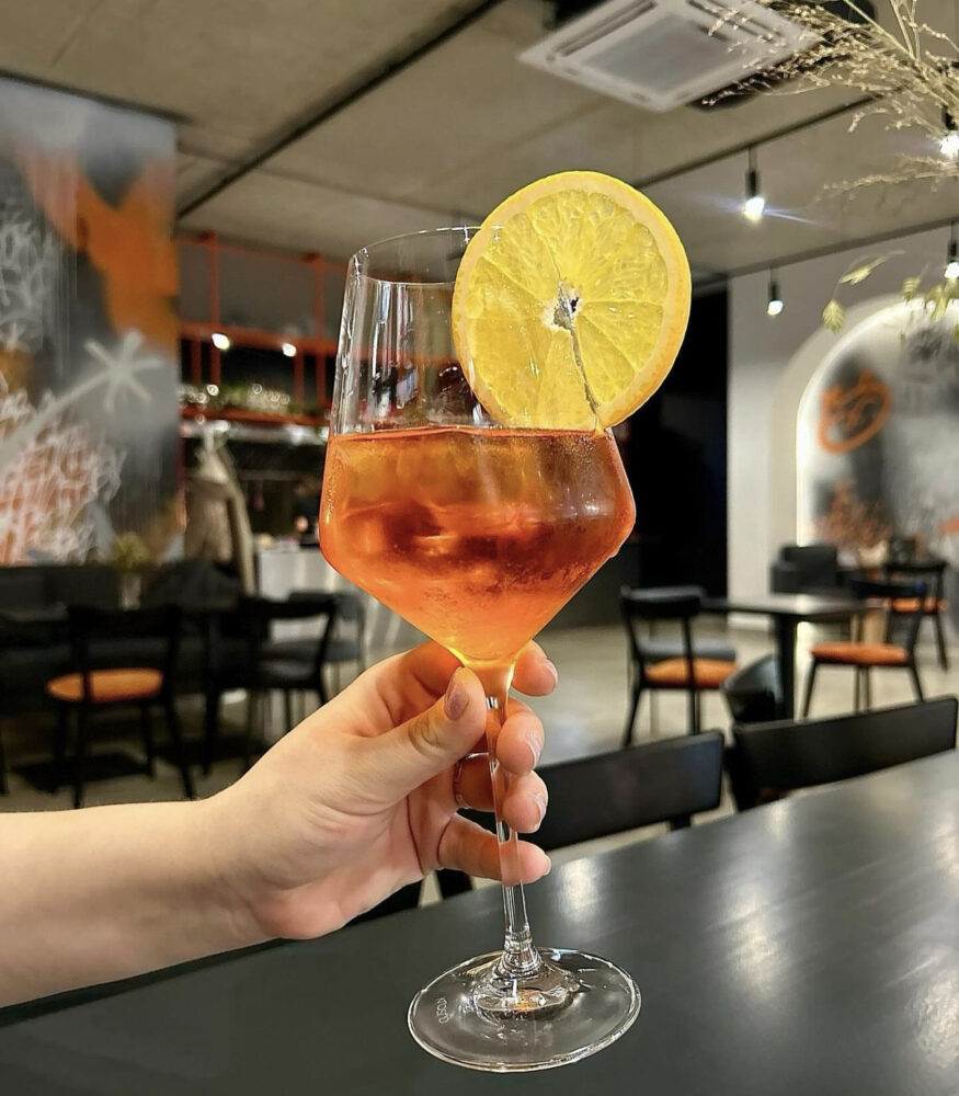 З напоїв – кава, какао, матча, чай, лимонади, холодна кава, кероб та сезонні гарячі напої. З алкогольних напоїв є класичні коктейлі, вина та зігріваючі коктейлі.