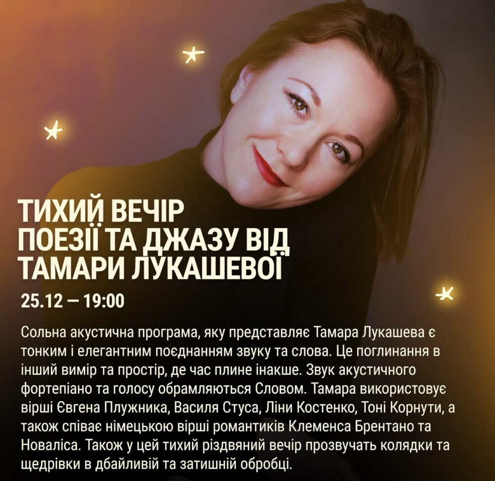 «Тихий вечір поезії та джазу від Тамари Лукашевої»