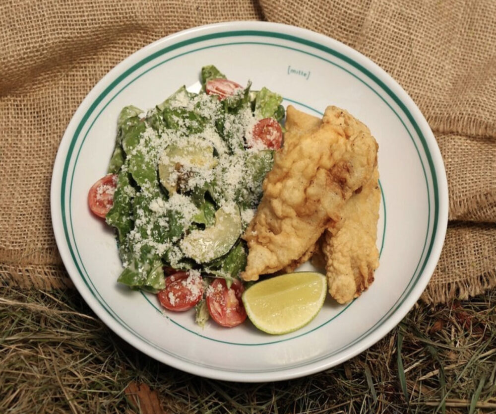 •салат з білою рибою в клярі;