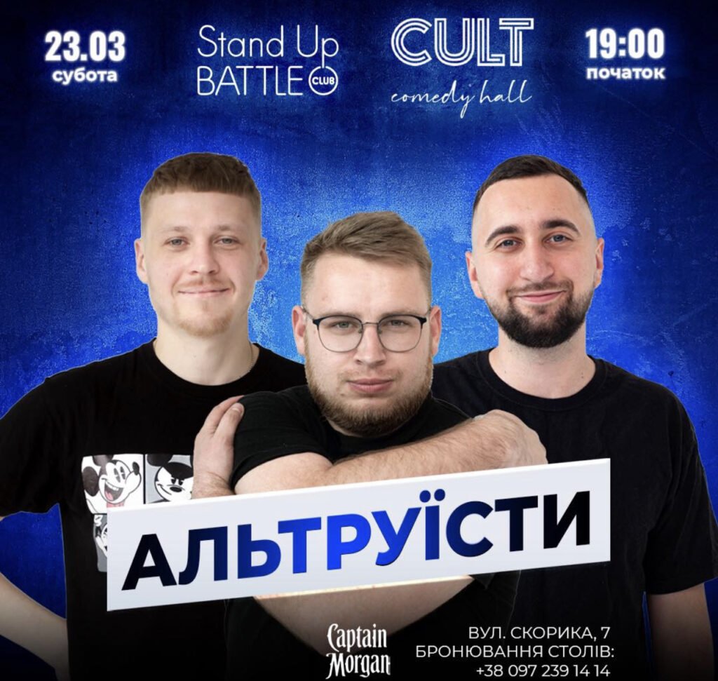 Альтруїстами вечора будуть: Богдан Вахнич, Олег Лузанов та Вадим Дзюнько.