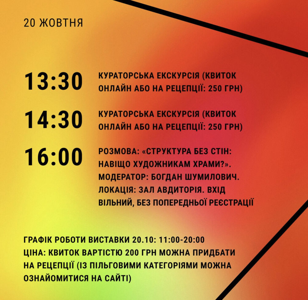 Коли: 19 жовтня о 17.00; 20 жовтня 11.00-20.00