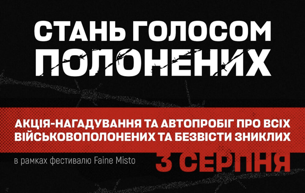 3 серпня у Львові в межах фестивалю Faine Misto пройде акція-нагадування та автопробіг на підтримку українських військовополонених і зниклих безвісти.