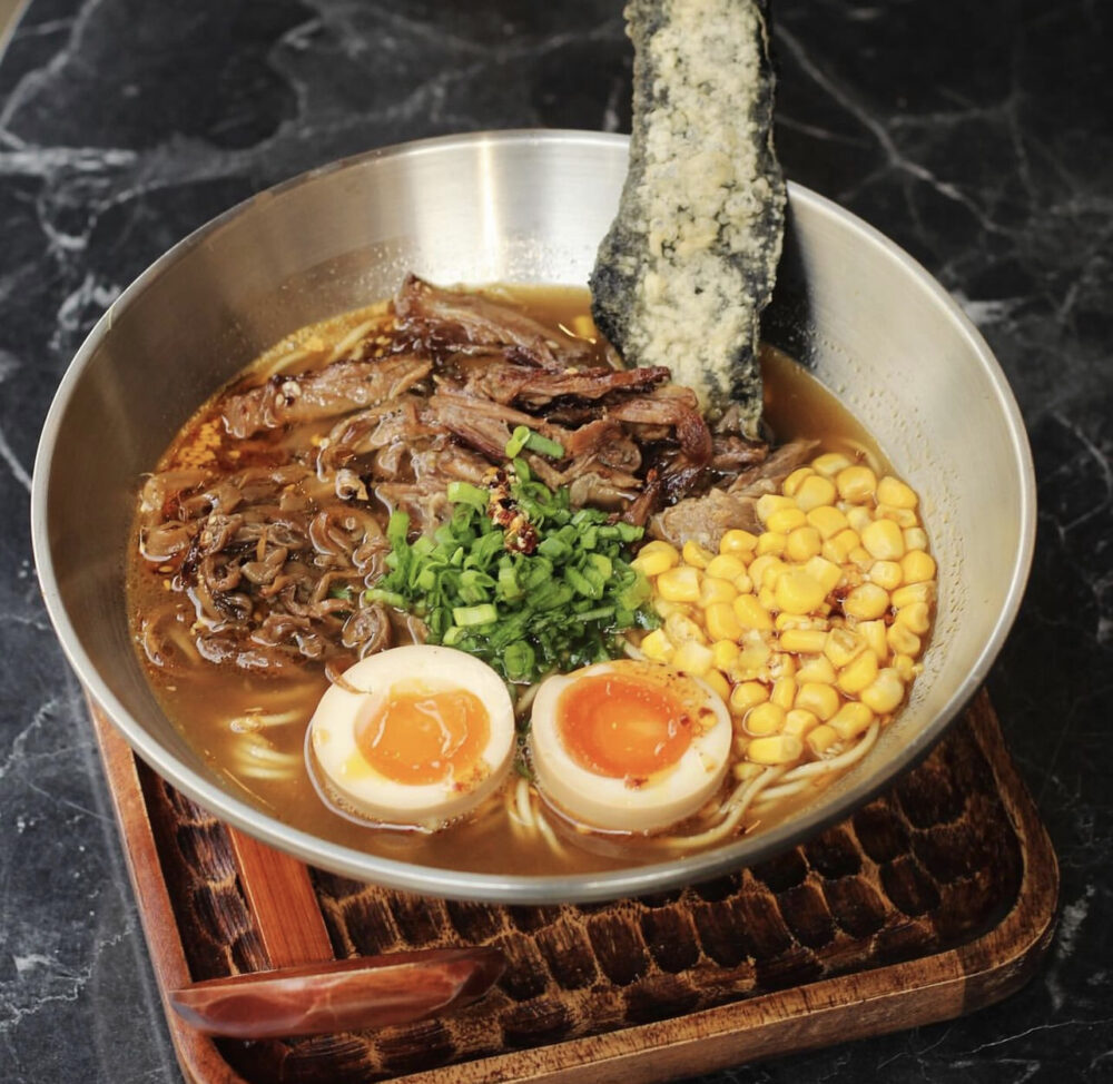 У закладі подають 7 видів рамену та 3 види гьоза, серед них також є веганські позиції. Окрім цього можна скуштувати онігірі з тунцем, японську парову булочку, локшину маземан, закуски та мочі на десерт. З напої у меню є газовані солодкі напої, чай та bubble tea.