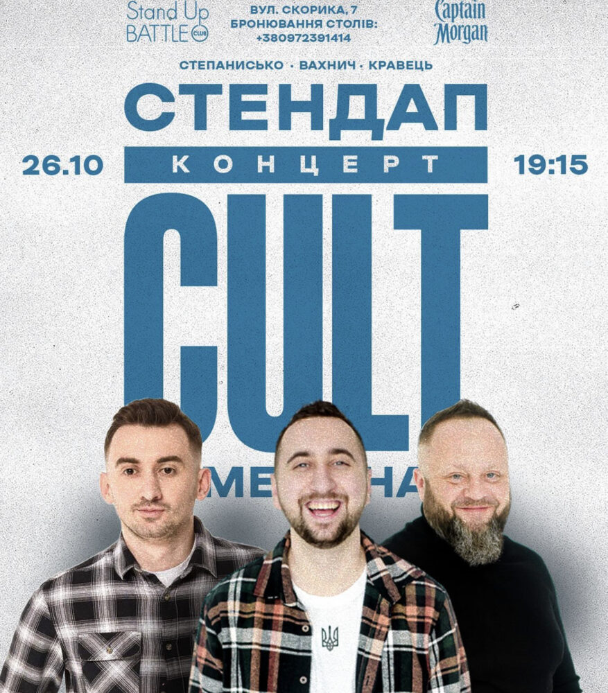 Де: Cult Comedy Hall, вул. Скорика, 7