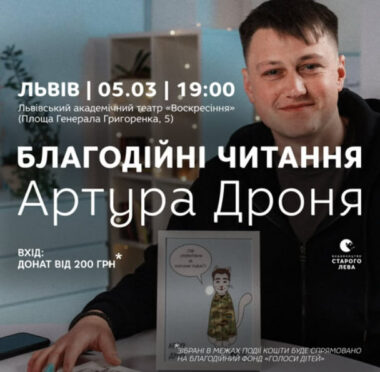 У Львові відбудеться благодійний вечір поезії та прози військовослужбовця Артура Дроня
