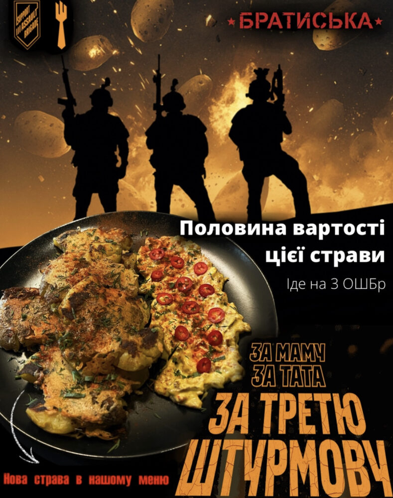 Третя окрема штурмова бригада створила кампанію, в межах якої заклади додають до свого меню спеціальну страву з картоплі, а весь прибуток з її продажу перераховують на потреби бійців бригади.