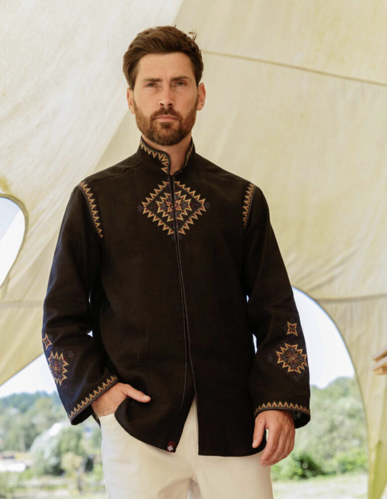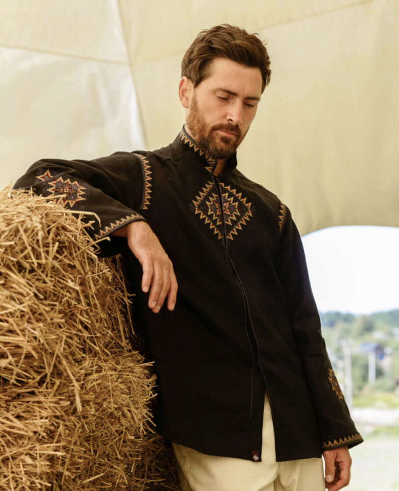 Орнамент цієї вишиванки дизайнери відтворили з сорочки Назарія Яремчука, зафіксованої на архівних фото, що увійшли до документального фільму.