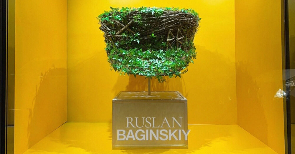 «27 мільйонів людей на рік, легендарні вітрини й стіни Galeries Lafayette, які зазвичай оформлюють світові гіганти моди, – тепер розповідають про Україну. До кінця серпня. Про Ruslan Baginskiy, про моду, ремесло й традиції, про український аванґард і силу української культури», – мовиться у дописі на сторінці Ruslan Baginskiy.