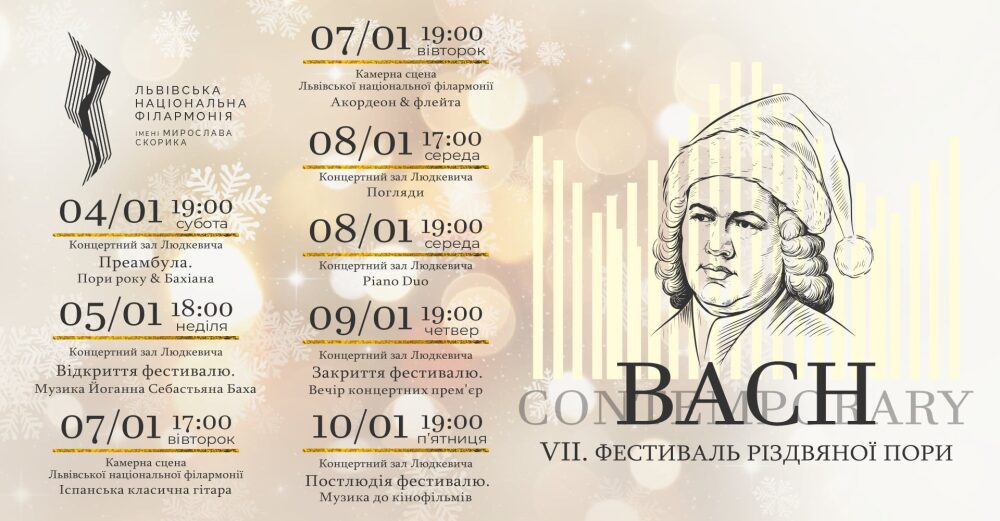 Львівська національна філармонія імені Мирослава Скорика розпочинає свій рік фестивалем Bach Contemporary, який проходитиме з 4 до 10 січня.