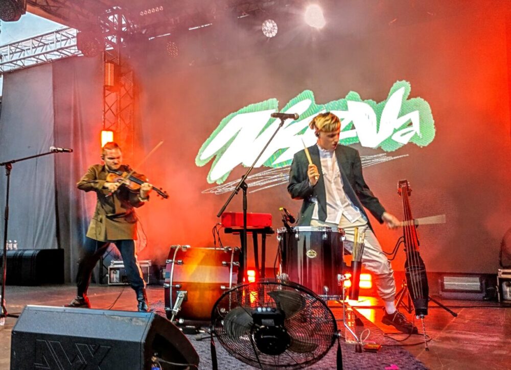 За п’ять днів до старту події гурт DakhTrio, який мав закривати перший день фестивалю, із особистих причин відмовився від участі. Їхнє місце зайняла NAZVA – галицько-донбаський, а фактично львівський гурт. Якщо раптом хто не знає, засновник команди Павло Гоц керував ДК NAZVA – першим приватним домом культури, який закрився в грудні 2022-го. Виступ на «Фронтері» став луцьким дебютом дуету – надзвичайно вдалим, як на мене. Більшість відвідувачів фестивалю просто не могли всидіти на місці під їхній альтернативний етноартхаос. А дехто завдяки цьому виступу відкрив для себе творчість гурту, хоча мені здавалося, що його пісні звучать звідусіль.