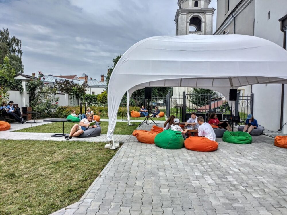 Турбота відчувалася в усьому: від чистих туалетів і безкоштовної питної води до смачної їжі на фудкорті та швидкого вирішення дрібних непорозумінь. Тут подбали про дитячі забави і зручну локацію для відпочинку та читання книжок учасників, придбаних на ятці «Книжкового лева». На території Окольного замку було добре навіть під суботнім палючим сонцем і недільним холодним дощем. Тривожність, яка заважає мені нормально жити всі 10 років війни, відступила. Бо відчувалося, що я серед своїх – людей, які поділяють мої проукраїнські цінності.
