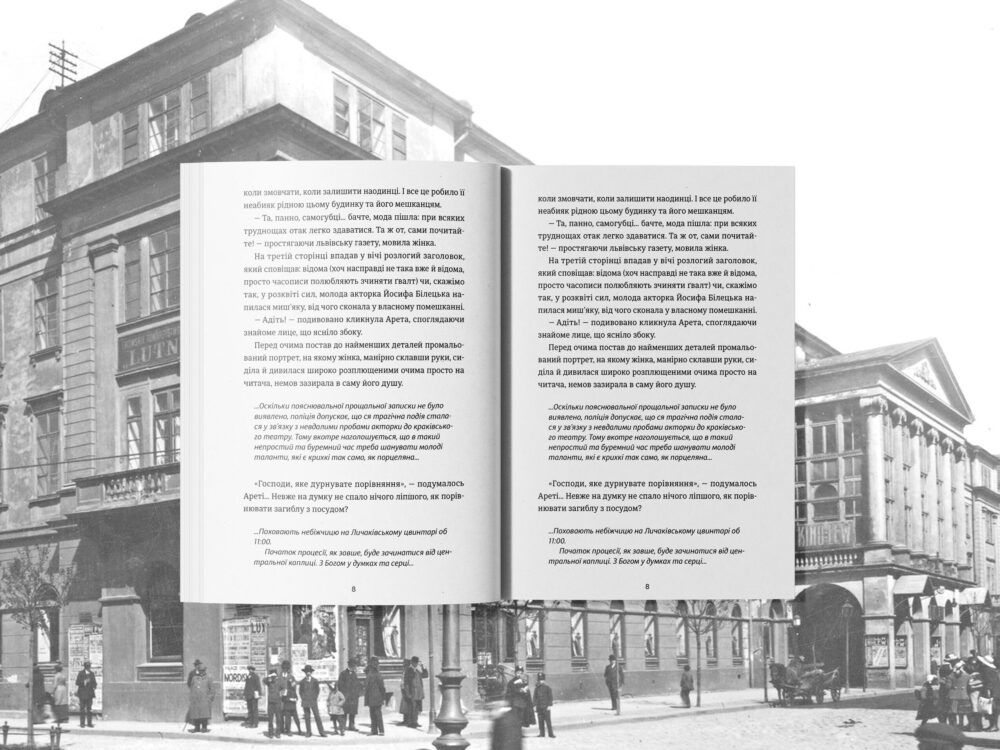 Раптом чоловікові згадалось, як у дитинстві їхні з Аретою родини часто-густо стрічалися під час спільних вакацій на купелях у Трускавці. За двотижневий відпочинок діти встигали сотні разів пересваритися та здружитися знову. Розсудлива маленька Арета, старша за Тадея на два роки, завжди спиняла його шалені витівки, як-то: розчавити черепашку чи равлика, аби пересвідчитися в тому, як ті влаштовані, чи, тренуючи витривалість організму, випити не одну склянку солоної, наче з дна моря, лікувальної води з бювету. Тоді йому видавалося, що ця тендітна паннуся, з химерним вкрапленням міді у волоссі, чудова партія і заготовлена для нього наречена (як і могло здаватись будь-якому хлопчаку шістьох років), аж поки всі дійові особи дитинства не виросли, аж поки Тадей не пішов навчатись на лікаря і не зрозумів про себе дещо важливе й водночас страшне: йому перестали подобатися жінки, а точніше, не подобались ніколи, а отже – одружитися з професією здавалося не такою вже й поганою перспективою. Що ж до Арети, то вона лишилася в його серці чудовим другом, який завше вислухає без осуду. – Отже, отрути! – Отже, отрути! – з усміхом повторив чоловік. – Тепер по порядку. Як отруїли? Коли? Арета заходилася розповідати історію Йосифи Білецької, а радше – її загадкової смерті. – Подейкують, акторка отруїлась самотужки і саме миш’яком. Чи є бодай найменша змога то перевірити? – спитала панна. – Цілком. Є так звана проба Марша. Треба лабораторне устаткування, аби її зробити, – жваво повідав Тадей. – При нагріванні тканин чи рідин, що містять миш’як, буде виділятися газ, який осідатиме чорною плівкою – так званим миш’яковим дзеркалом. – А звідки беруться рідини чи – як ти сказав? – тканини? – зосереджено уточнила Арета. – Рідини можуть лишатись безпосередньо в помешканні людини, як-от: недопита філіжанка кави чи гербата. Ну а тканини, – перевівши погляд, аби приховати незручність моменту, швидко договорив лікар, – з плоті. Мушу зазначити, що отрута дуже підступна. Без видимих ознак, смаку чи запаху, ще й доступна без цидулки від лікаря. Приходиш до будь-якої аптеки, кажеш, що працюєш з ювеліром чи з тим самим лікарем, і купуєш стільки плящин, скільки годен донести. Тим, знаєш, можна й пів Львова втруїти. – То все страшенно цікаво. А як гадаєш, цей прилад може бути в лабораторіях цісарської поліції? Чи як інакше вони визначають, якою саме отрутою було вбито людину? – З минулого року в лікарськім відділі нашого університету було відкрито кафедру й заклад судової медицини, де зосередили всю практичну, навчальну і наукову діяльність судових медиків цілого Львова й Східної Галичини. Але зрозумій – року навчання замало, щоб опанувати нову галузь, – акуратно, силкуючись не скомпрометувати свою альма-матер, підвів Тадей. – Отже, поліція мала замовити таке дослідження у вашій лабораторії? – задумливо мовила жінка. – Якщо на те були підстави, то саме так. Якщо знаєш приблизну дату, ми зможемо то перевірити в журналі. – Чудово! Ой, як то чудово! – проказала жінка й, видихнувши, продовжила свій допит. – Себто шанси, що поліція провела такий експеримент, дуже високі? – Вони є. Але, гадаю, що там все простіше. – Тобто? – Ну, якби людина сама хотіла втруїтися, то полишила б записку й неодмінно порожній флакон з отрутою. Це завжди спрощує роботу нашим службам, особливо якщо до цього ді