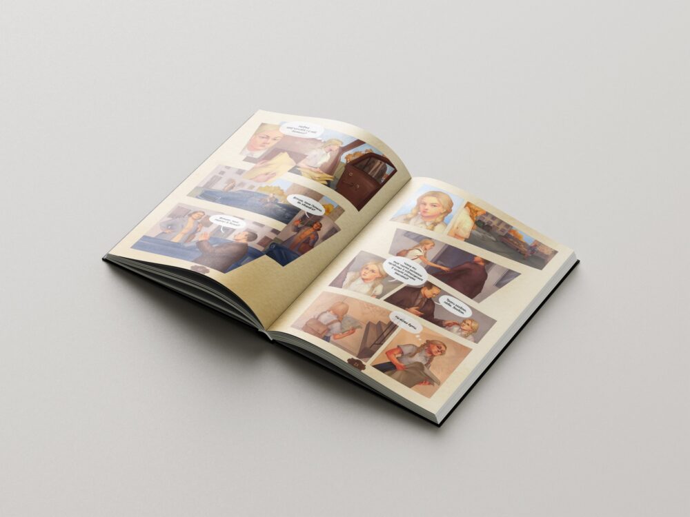 Візуальна частина роботи художниці Лади Касьяненко доповнює текст і створює ефект повного занурення в події. «Мені цікаво працювати з історичними постатями, особливо неоднозначними. Для мене минуле – наче зоряне небо. Ми бачимо світло тих зірок, які вже давно погасли. Але їхній вплив усе ще відчутний. Саме тому я вирішила розповісти цю історію через комікс», – пояснює авторка Віра Курико.