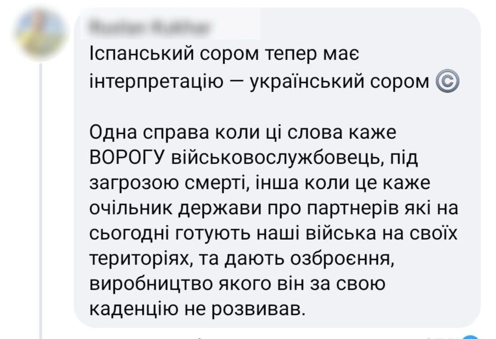 Користувачі соцмереж писали, що все ж є різниця між тим, що каже військовослужбовець в обличчя ворогу, і якою лексикою послуговується президент країни.