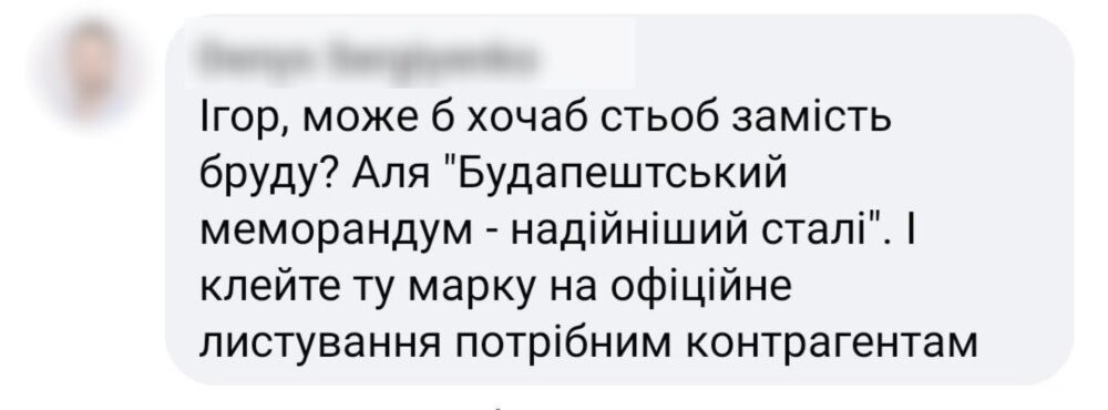 Днями у соцмережах Ігор Смілянський, генеральний директор Укрпошти, написав, що компанія має у планах випускати нові поштові набори. Й одразу підкинув ідею нової марки, яка стосуватиметься Будапештського меморандуму: «А після інтервʼю Президента подумалось, чи не продовжити серію «Русскій воєнний корабль, іді… !» маркою «Будапештський меморандум — це х…я». Що скажете, буде популярною?».