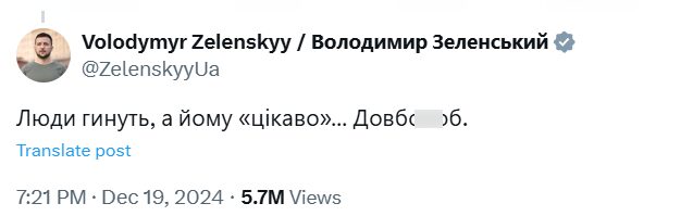 Варто зауважити, що це не вперше Зеленський публічно емоційно реагує на дії Путіна. Зокрема, президент України назвав російського диктатора «довб….м» у відповідь на заяву Путіна про «дуель»: мовляв, Росія завдасть удару ракетою «Орєшнік» по Києву, а українці виставлять протиповітряну оборону.