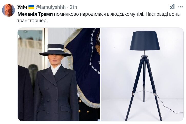 Але не селебритиз єдиними. Також люди помітили схожість Меланії Трамп і… торшера.