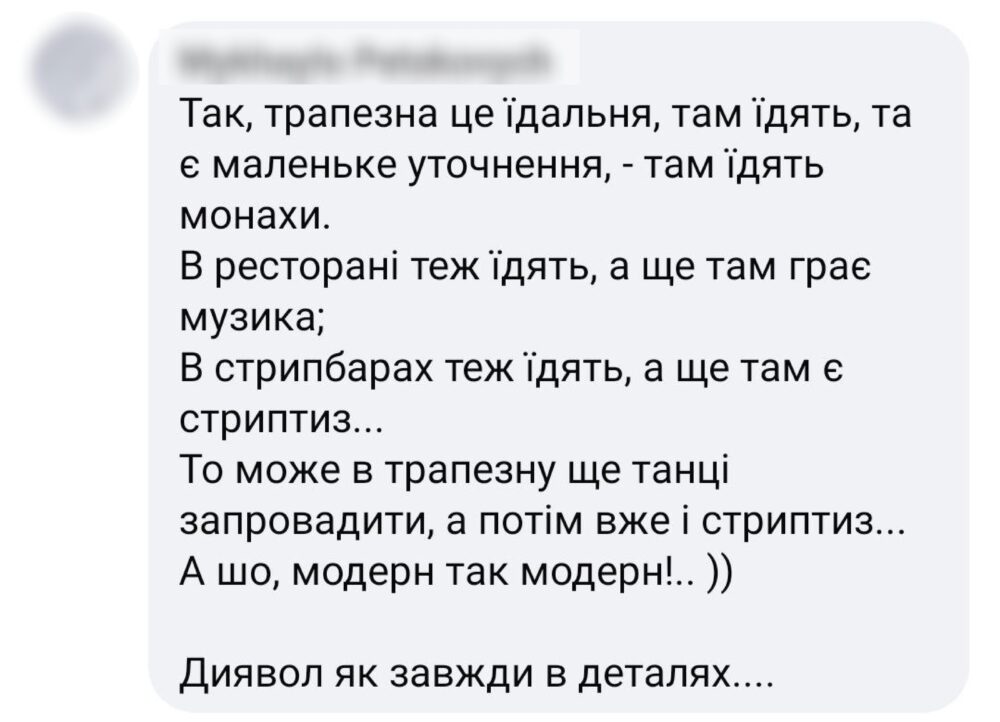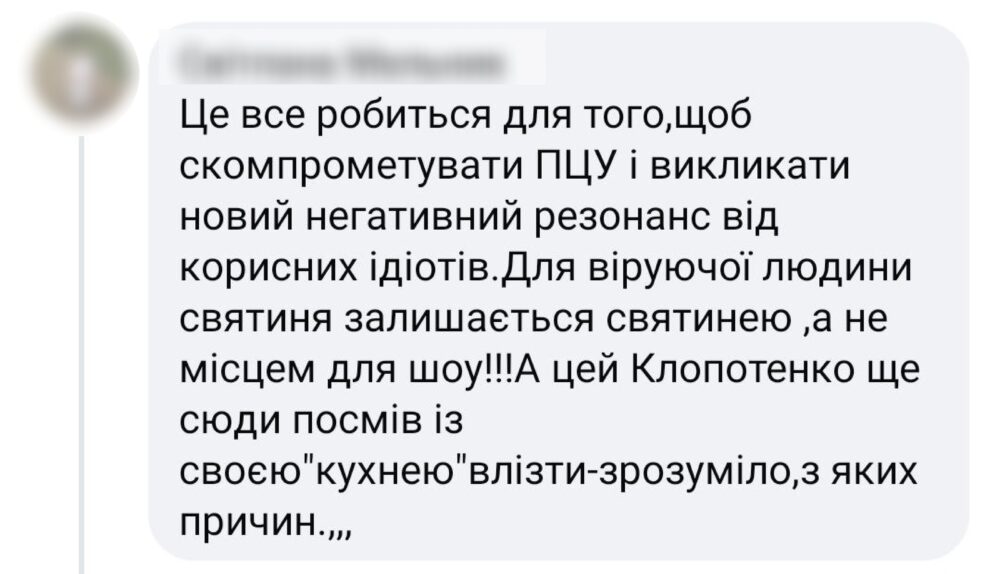 Якщо ви проаналізуєте більшість коментарів, вони зводяться до: «дивіться до чого довели…» Тобто, раніше було краще. В часи паші мерседеса і домінування москви. Віддали святині й там тепер ось таке! Якби не ми з Євгеном, був би інший привід. Це важливо розуміти!».