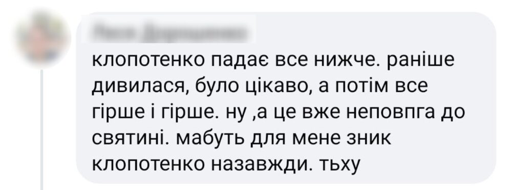Євген Клопотенко, якому зі всіх причетних до створення випуску «Готуємо 12 втрачених українських страв! Чому ми про них забули?» дісталося чи не найбільше, також написав про останні події: «Я завжди готовий визнавати свої помилки. Тому мої щирі вибачення всім істинно віруючим українцям чиї почуття я зачепив. Востаннє зіркою прес-конференції пропагандистки захарової я ставав під час боротьби за борщ. Від того, що українська нація існує (і існує набагато довше московитів), має власну ідентичність та відроджує її на болотах неймовірно підгорає. Ворог витрачає неймовірні зусилля, щоб роз’єднати нас, викидаючи сотні фейків у інфопростір. Але в нього нічого не вийде!».