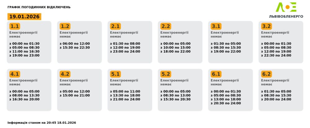Львівобленерго опублікувало графік погодинних знеструмлень на сьогодні.