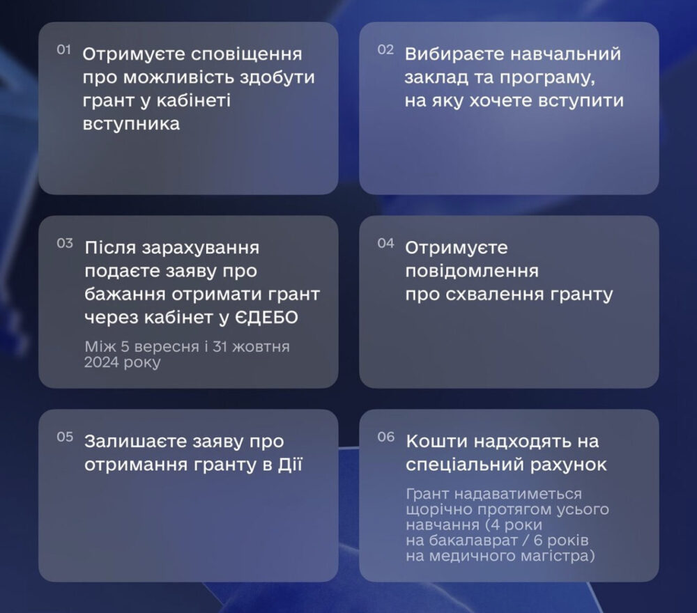 Ті, хто виграють грант, отримуватимуть 15 тисяч шорічно протягом тривалості навчання. Грант частково покриватиме вартість навчання.