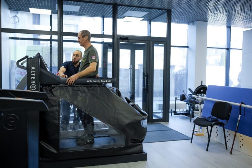 Центри NextStep Ukraine працюють на обладнанні, яке не має аналогів в Україні. Наприклад, доріжка зі зворотним зв’язком C -Mill VR +. Дороге обладнання допомагають закуповувати партнери та волонтери, зокрема й зі Сполучених Штатів.