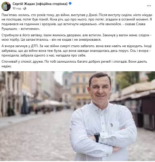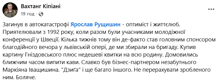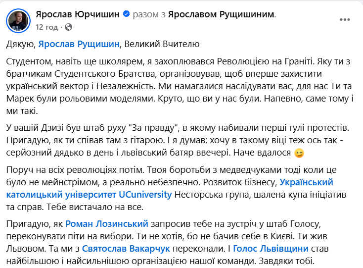 Вчора ввечері, 24 липня, у ДПТ на Івано-Франківщині загинув громадський діяч, народний депутат від партії «Голос» Ярослав Рущишин. Під час навчання створив та очолив Студентське братство Львівського торговельно-економічного інституту. Був одним з організаторів Революції на граніті та Студентського голодування на Майдані Незалежності.