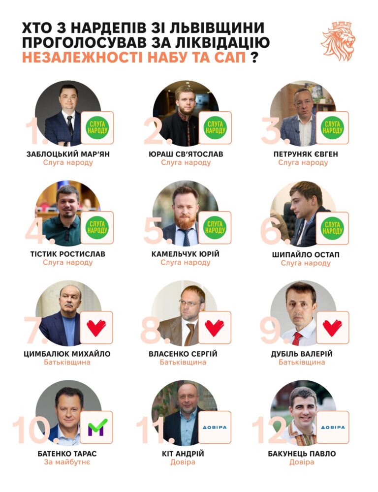 «За» законопроєкт проголосували такі нардепи зі Львівщини: