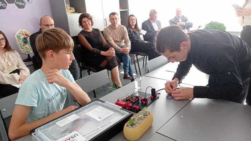 У Любешівському ліцеї презентували STEM-лабораторію від Проєкту USAID «ГОВЕРЛА». Це сучасний навчальний простір, оснащений обладнанням для вивчення природничих наук, технологій, інженерії та математики. Фото: сайт громади