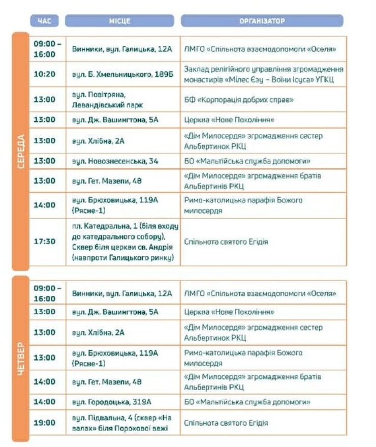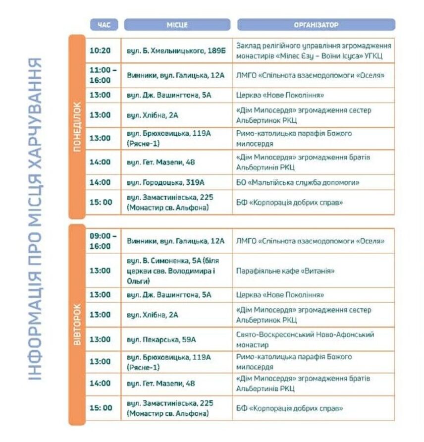 Від завтра прогнозують зниження температури повітря, тому у місті нагадують про місця, де люди у потребі можуть отримати гаряче харчування. Про це повідомили у Львівській міській раді.