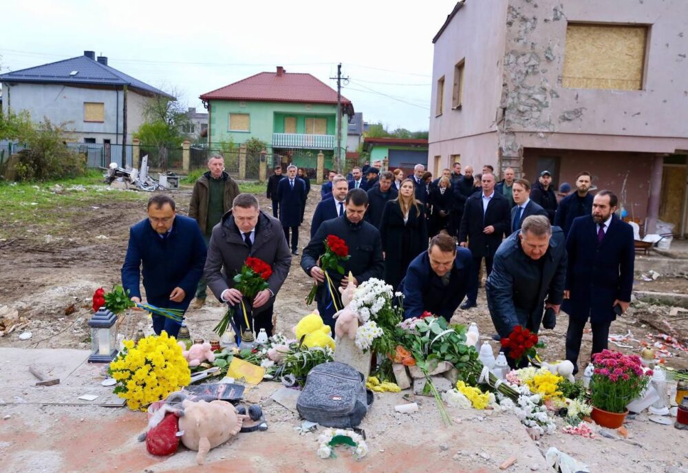 У межах поїздки він відвідав Лапаївку, де напередодні стався російський ракетний удар по цивільних об’єктах.