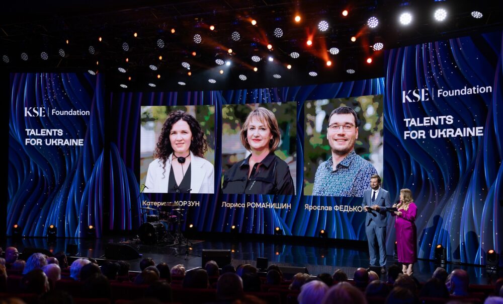 у відзнаці STEM-учителів – Катерина Корзун з Дніпропетровщини, Лариса Романишин зі Львівщини, Ярослав Федько з Дніпра.