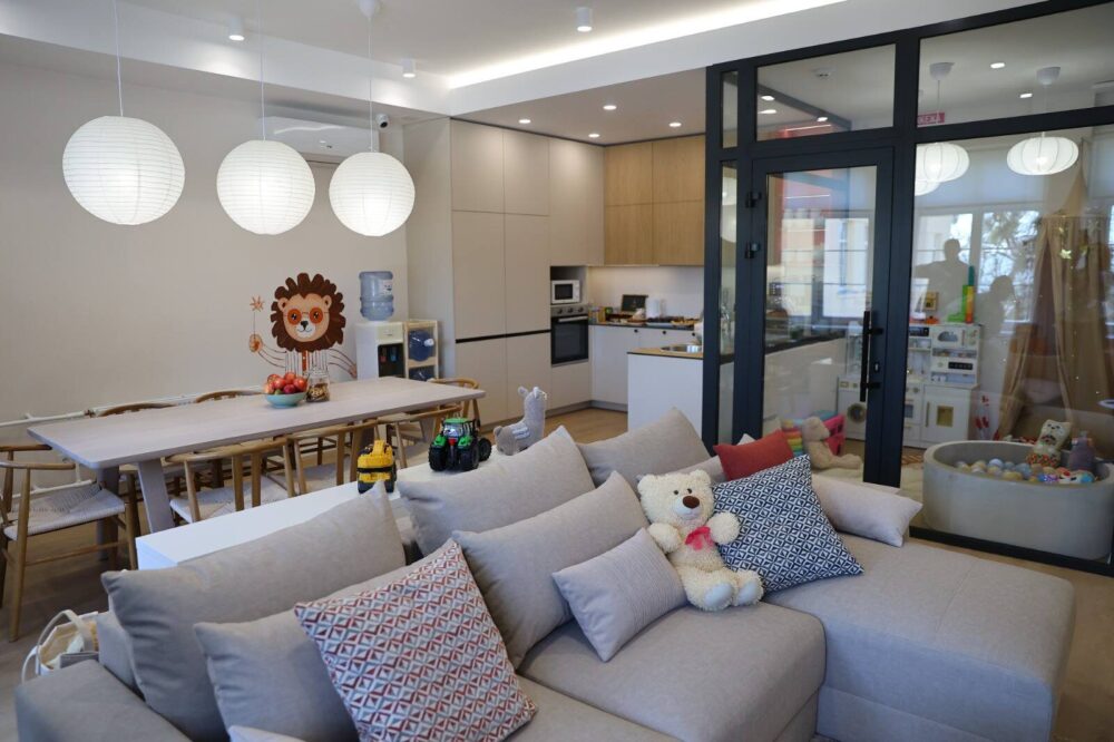 Сімейна кімната площею 174 м² облаштована п’ятьма окремими спальними кімнатами з санвузлами, кухнею, пральнею, душовими, вітальнею та ігровою зоною. Родини можуть залишатися тут стільки часу, скільки потребує лікування дитини, без фінансових витрат.
