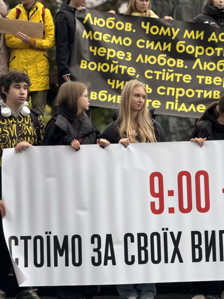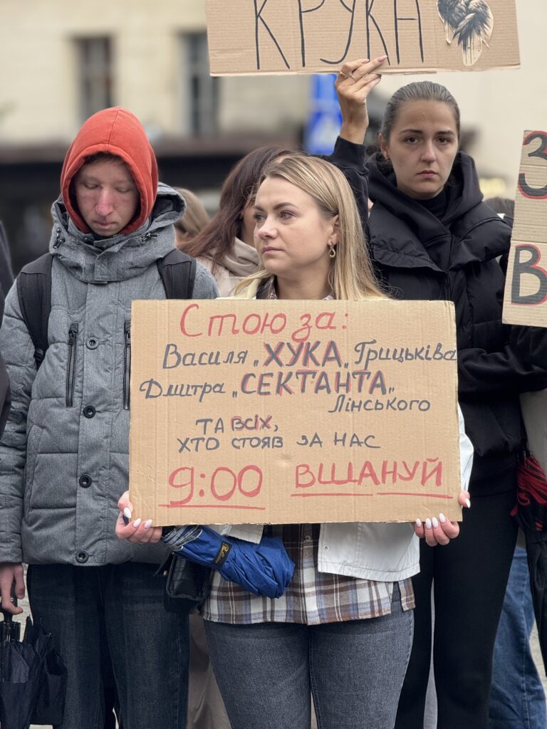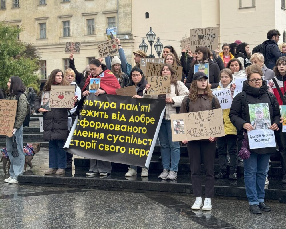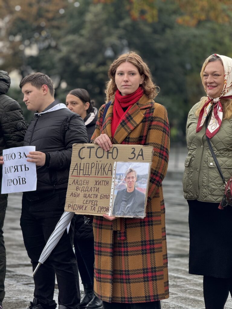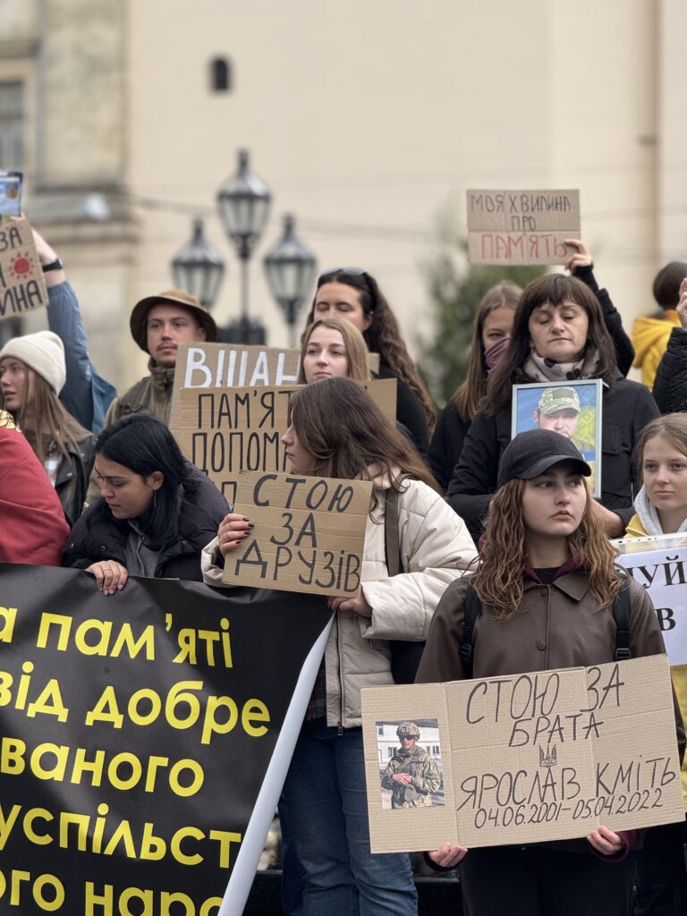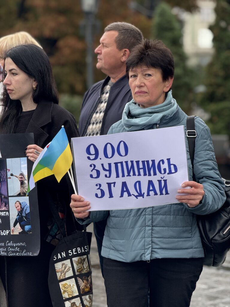 О 09:00 біля пам’ятника Тарасу Шевченку у Львові містяни збіралися на персоналізовану хвилину мовчання «Стою за…». Акція відбулася у різних містах України.