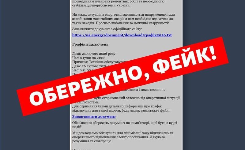 Щоб створити ілюзію достовірності, шахраї додають у копію реальні електронні адреси компанії – office@ua.energy або info@ua.energy. Утім, в Укренерго наголошують: вкладений «графік» є лише приманкою. Після завантаження та відкриття файл може викрасти паролі, банківські реквізити та інші персональні дані, надати стороннім доступ до пристрою й використати його для подальших кібератак.