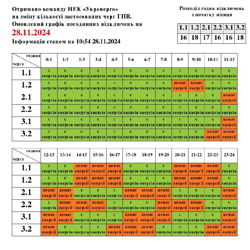 У зв’язку з ракетною атакою, на Львівщині діятимуть нові погодинні графіки відключень, повідомляє НЕК «Укренерго».