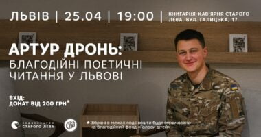 25 квітня о 19:00 у кав’ярні-книгарні Видавництва Старого Лева, що на вул. Галицька, 17, відбудуться благодійні поетичні читання…