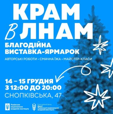 14-15 грудня на кафедрі монументального живопису Львівської національної академії мистецтв пройде зимовий благодійна виставка-ярмарок «КРАМ в ЛНАМ». На…