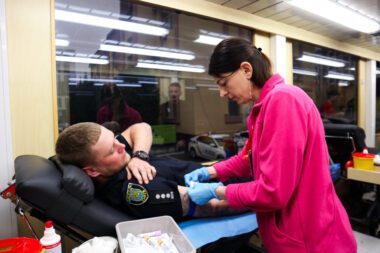 Львівські патрульні стали донорами у мобільному центрі крові