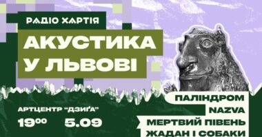 5 вересня в артцентрі «Дзиґа» відбудеться акустичний концерт, який організовує Радіо Хартія. Початок о 19:00. Для глядачів виступатимуть…