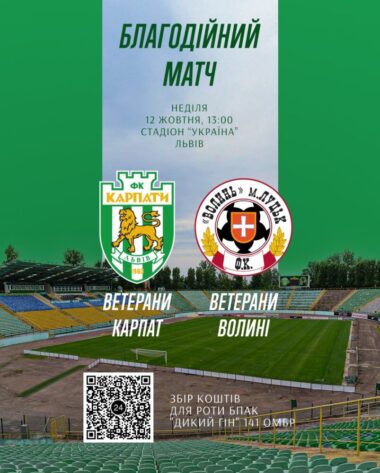 12 жовтня о 13:00 на стадіоні «Україна» відбудеться благодійний матч ветеранів «Карпати» – «Волинь». Вхід вільний, а пряму…