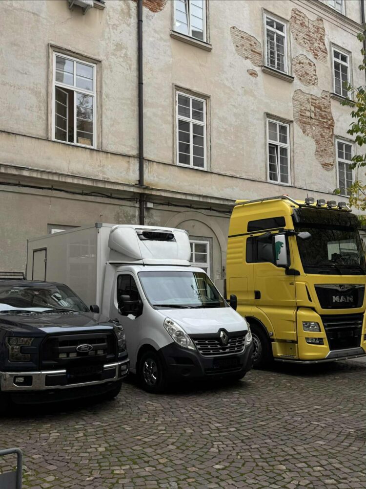 - автомобілі Ford F150, Renault Muster та тягач MAN TGX;