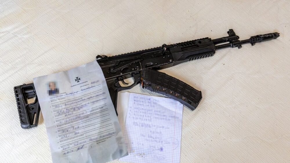 СБУ затримала зловмисника під час виходу зі спорядженою зброєю. У нього вилучили мобільний телефон з доказами листування з куратором ФСБ.