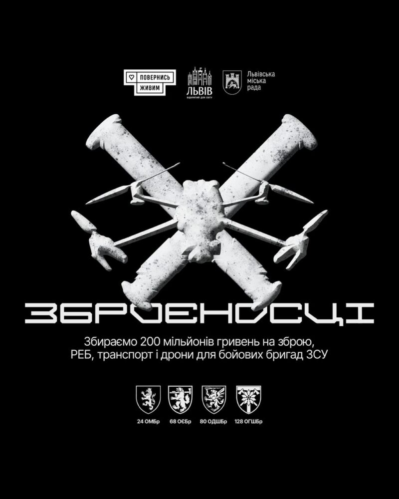 Благодійний фонд Повернись живим разом з Львівською міською радою запустили великий збір «Зброєносці». Ціль збору – 200 мільйонів для ЗСУ.